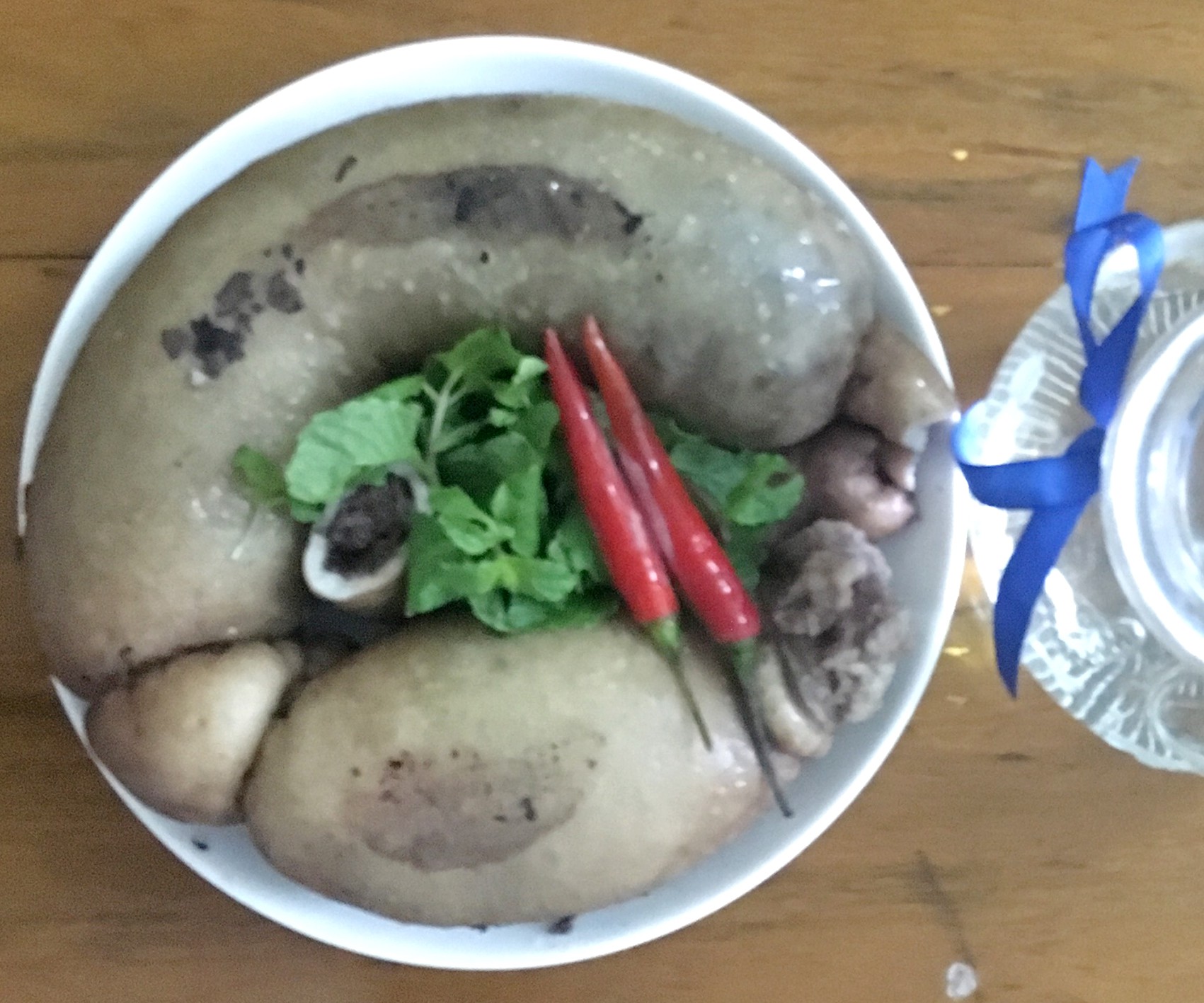 Vào những buổi trời lạnh, thật sự thú vị khi được ăn món dồi nếp nóng hổi, vị thảo quả ấm sực từ đỉnh tóc cho tới đầu mút ngón chân.